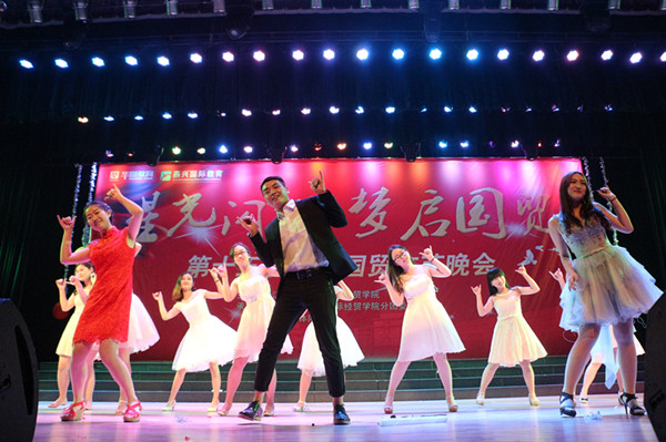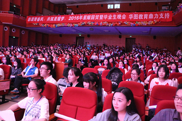 At 7 oclock on the evening of  May 28, the grand evening party Starlight of International Trade, organized by schools student union and all students of year 2014, had its opening ceremony in Jiaoqiaos auditorium. Leaders and some teachers were present and expressed warm blessings to all students of the school.