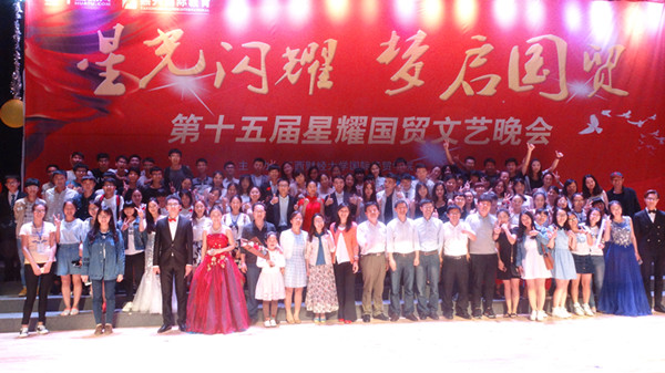At 7 oclock on the evening of  May 28, the grand evening party Starlight of International Trade, organized by schools student union and all students of year 2014, had its opening ceremony in Jiaoqiaos auditorium. Leaders and some teachers were present and expressed warm blessings to all students of the school.
